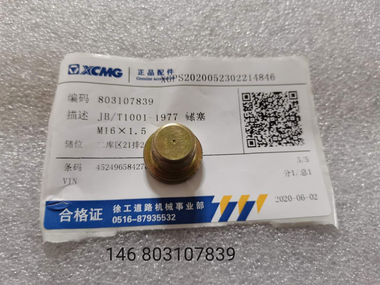 JB/T1001-1977 螺塞 M16×1.5
